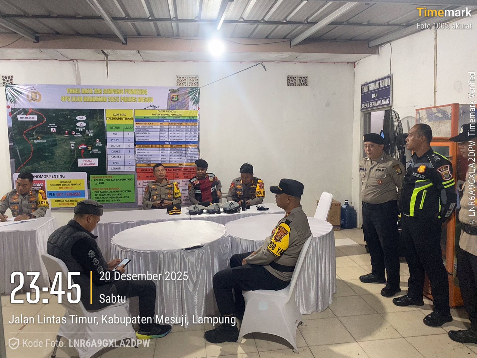 Mesuji – Memasuki hari kedua OPS Lilin Krakatau 2025, Kapolres Mesuji bersama Waka Polres dan Kabag OPS melaksanakan pengecekan di 3 Pos PAM dan 2 Pos YAN yang ada di Wilayah Hukum Polres Mesuji dalam rangka pengamanan Nataru (Natal tahun baru) yang akan berlangsung selama 14 hari kedepan. Minggu (21/12/25) Dini Hari