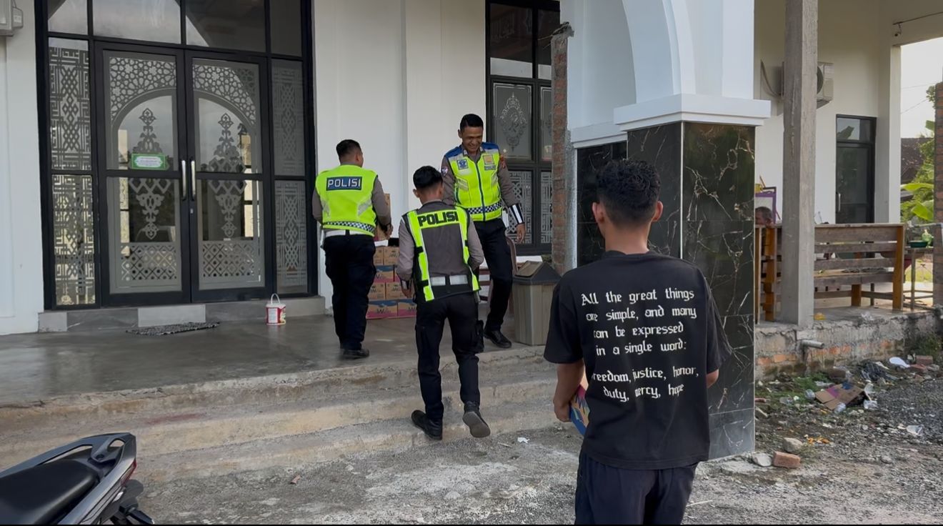 MESUJI – Jajaran Sat Lantas Polres Mesuji kembali melaksanakan kegiatan sosial bertajuk TASI BERKAH PRESISI (Lantas Mesuji Bersedekah Presisi) dengan membagikan air mineral di berbagai masjid dan mushola yang berada di wilayah Kecamatan Simpang Pematang, Kabupaten Mesuji. Senin (02/03/26) Petang.