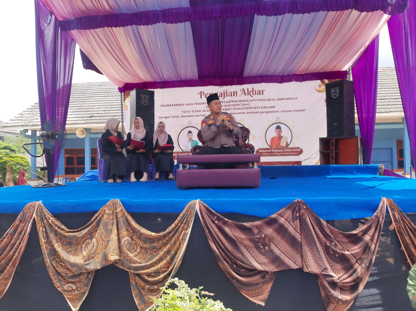 Kabag OPS Polres Mesuji Sampaikan Pesan Kamtibmas saat Melaksanakan Pengamanan Pengajian dan Haul Akbar di Ponpes Minhajut Thullab Al Amin