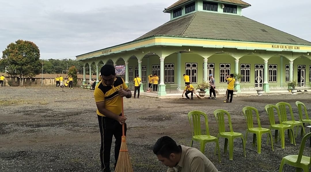 Mesuji, Lampung – Kapolres Mesuji AKBP Dr. Muhammad Firdaus, S.IK., M.H., memimpin langsung kegiatan pembersihan tempat ibadah dalam program Beli humanis (Bersih peduli humanis) di masjid Nur ma’rifat alimah Desa agung batin, Kecamatan Simpang Pematang, Kabupaten Mesuji. Kegiatan tersebut merupakan akselerasi commander wish Kapolda Lampung Irjenpol Helfi Assegaf S.I.K., M.H yaitu mengoptimalkan kegiatan bakti sosial.