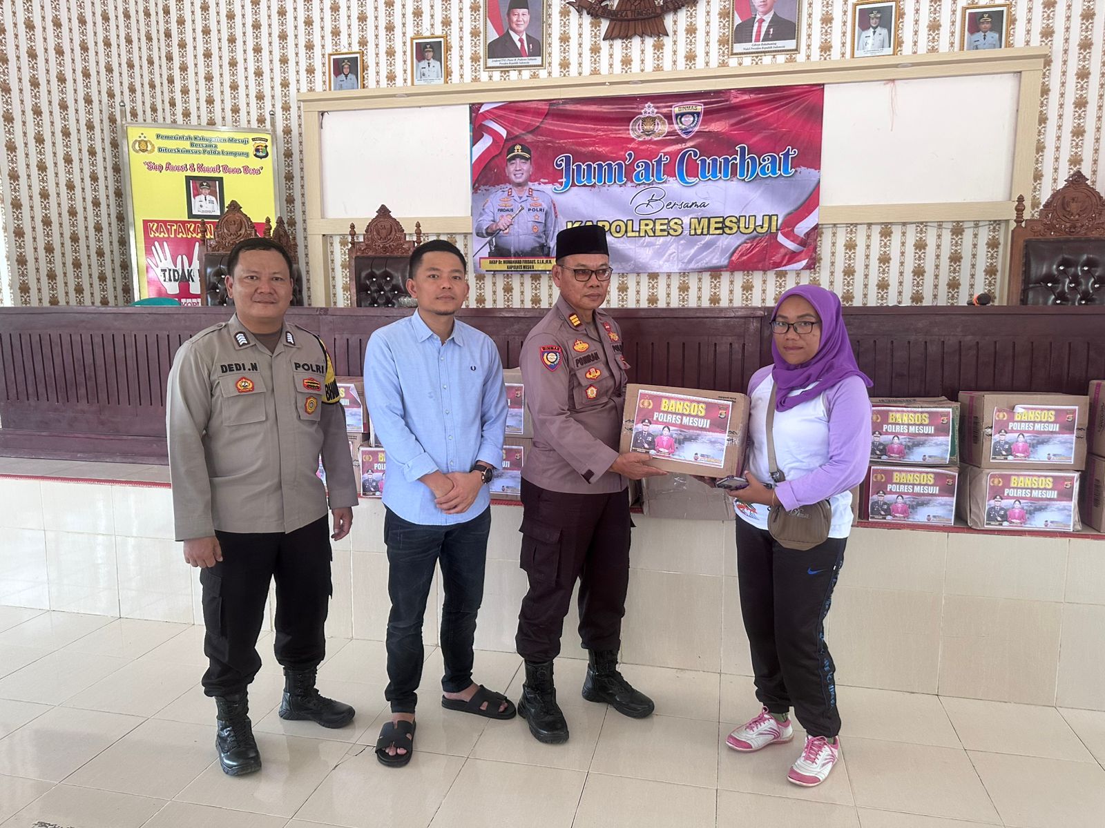 Mesuji – Jajaran Sat Binmas Polres Mesuji melaksanakan Jumat Curhat dan sekaligus melaksanakan Bansos di Desa Rejo Binangun Kecamatan Simpang Pematang Kabupaten Mesuji. Jumat (26/09/25)