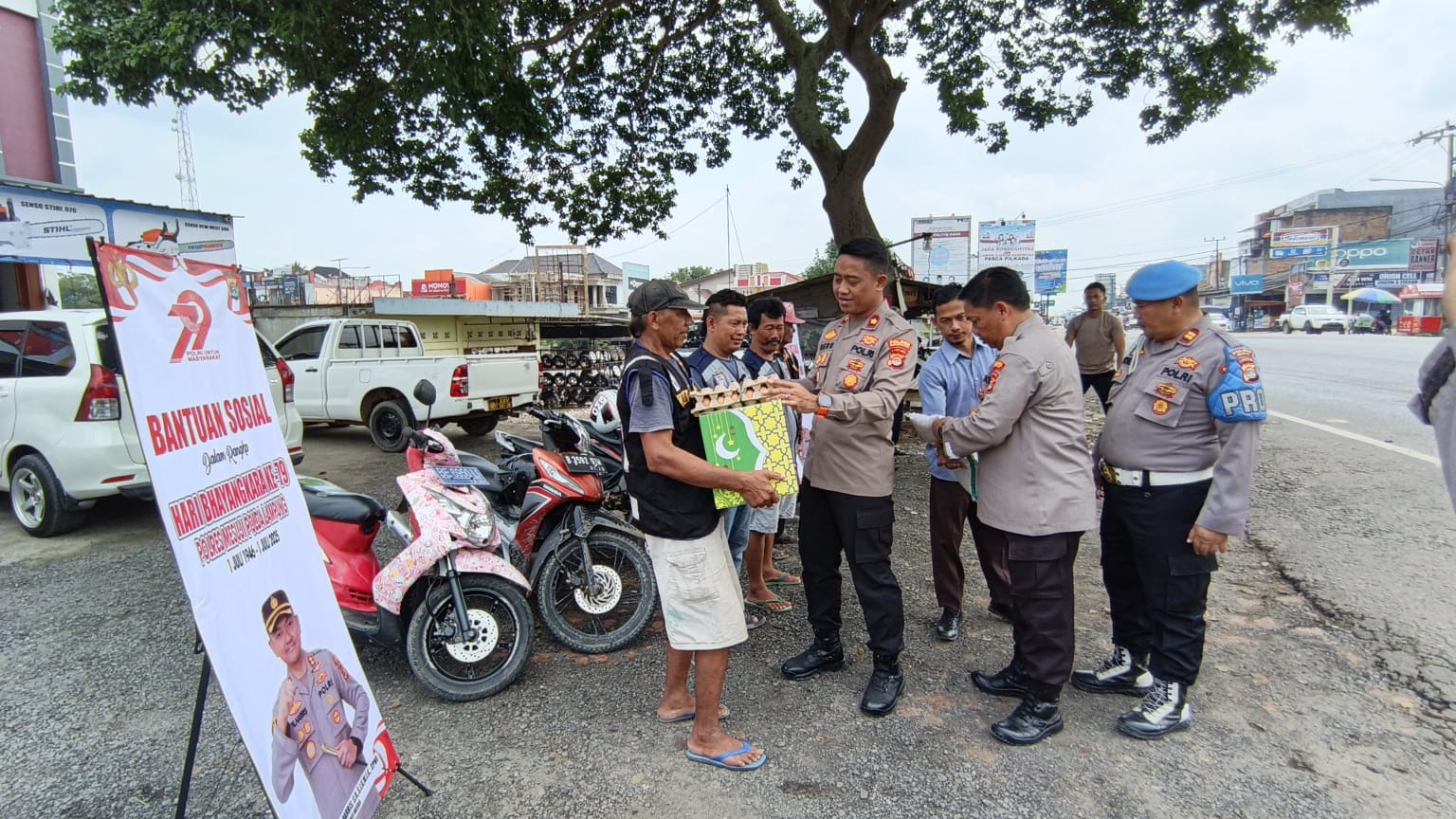 Mesuji – Polres Mesuji memaknai Hari Bhayangkara Ke-79 dengan berbagi kepada Tukang Ojek Pomela yang ada di Simpang Pematang, Kecamatan Simpang Pematang Kabupaten Mesuji. Kamis (26/06/25)