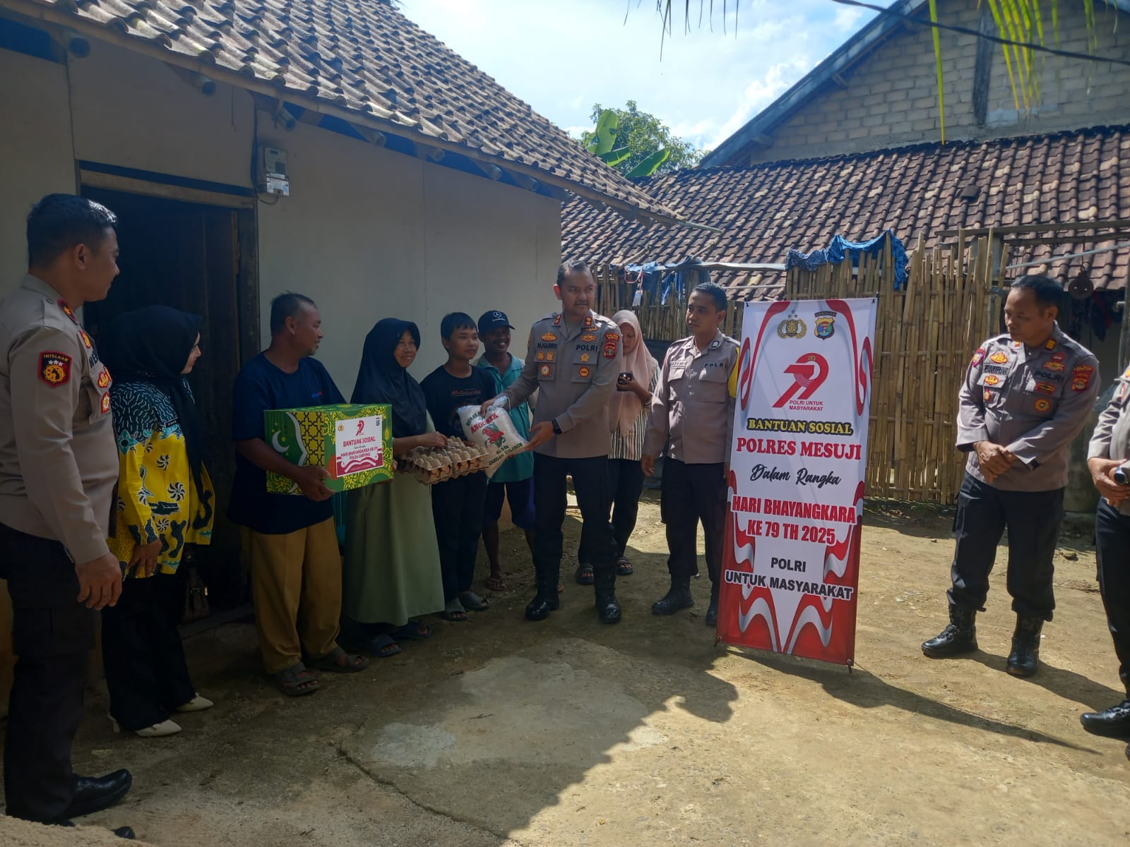 Polres Mesuji Berbagi Dengan Masyarakat Kurang Mampu Dalam Memaknai Hari Bhayangkara Ke-79