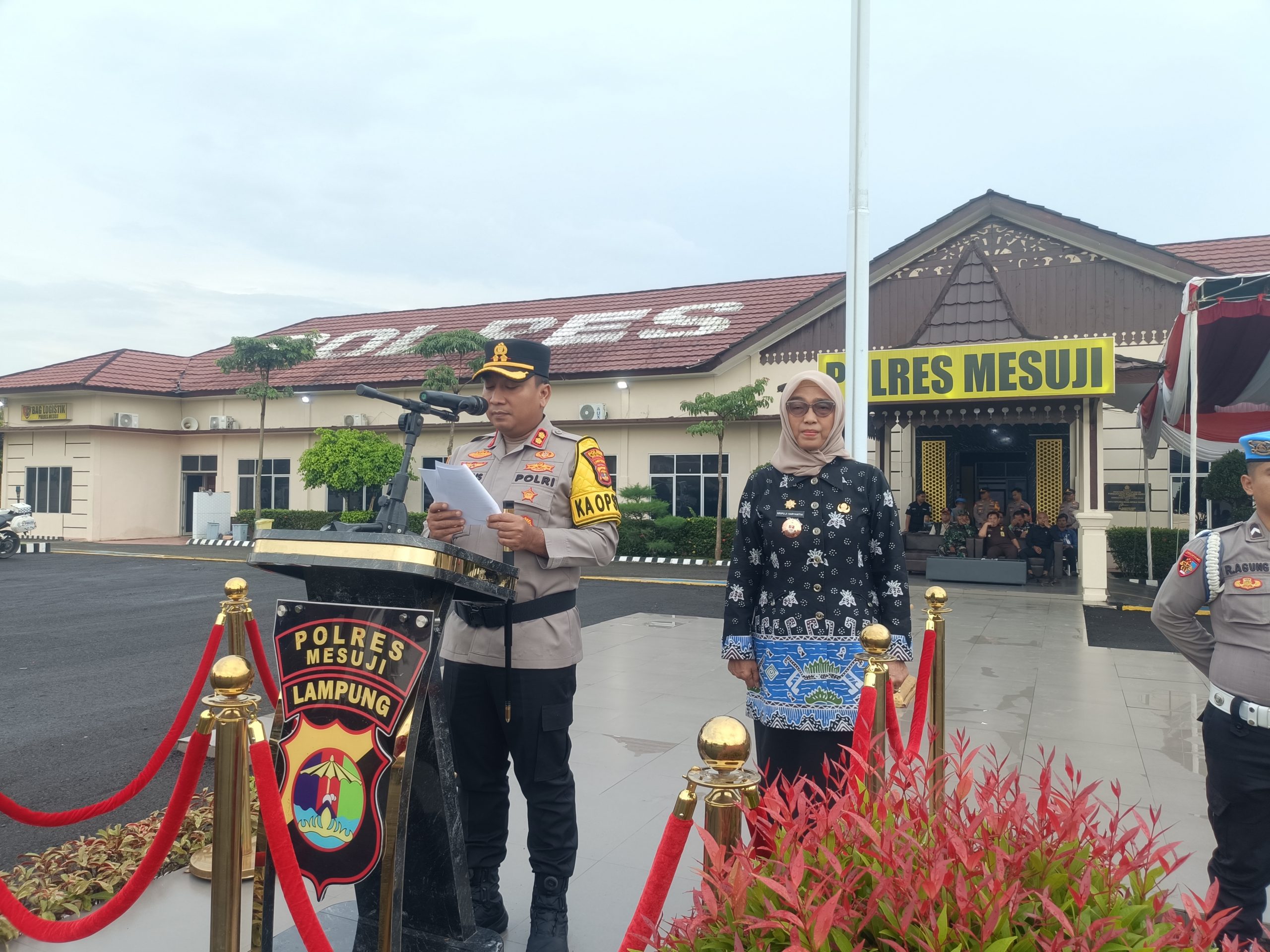 Mesuji – Jajaran Polres Mesuji bersama stakeholder terkait melaksanakan Apel Gelar Pasukan Operasi Kepolisian Terpusat “Ketupat 2026” dalam rangka pelayanan perayaan Idul Fitri 1447 H, bertempat di lapangan Apel Mapolres setempat. Kamis (12/03/26)