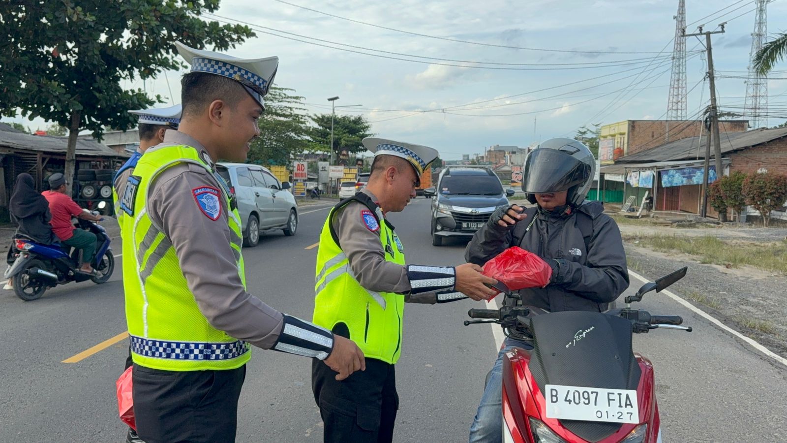 Mesuji – Melaksanakan giat Tasi Berkah Presisi (Lantas Mesuji Bersedekah Presisi) dengan membagikan nasi kotak kepada pengguna jalan untuk berbuka puasa serta memberikan Air mineral kepada pengurus Masjid Al Muhajirin dan Masjid Demak. Jumat (20/02/26) Sore
