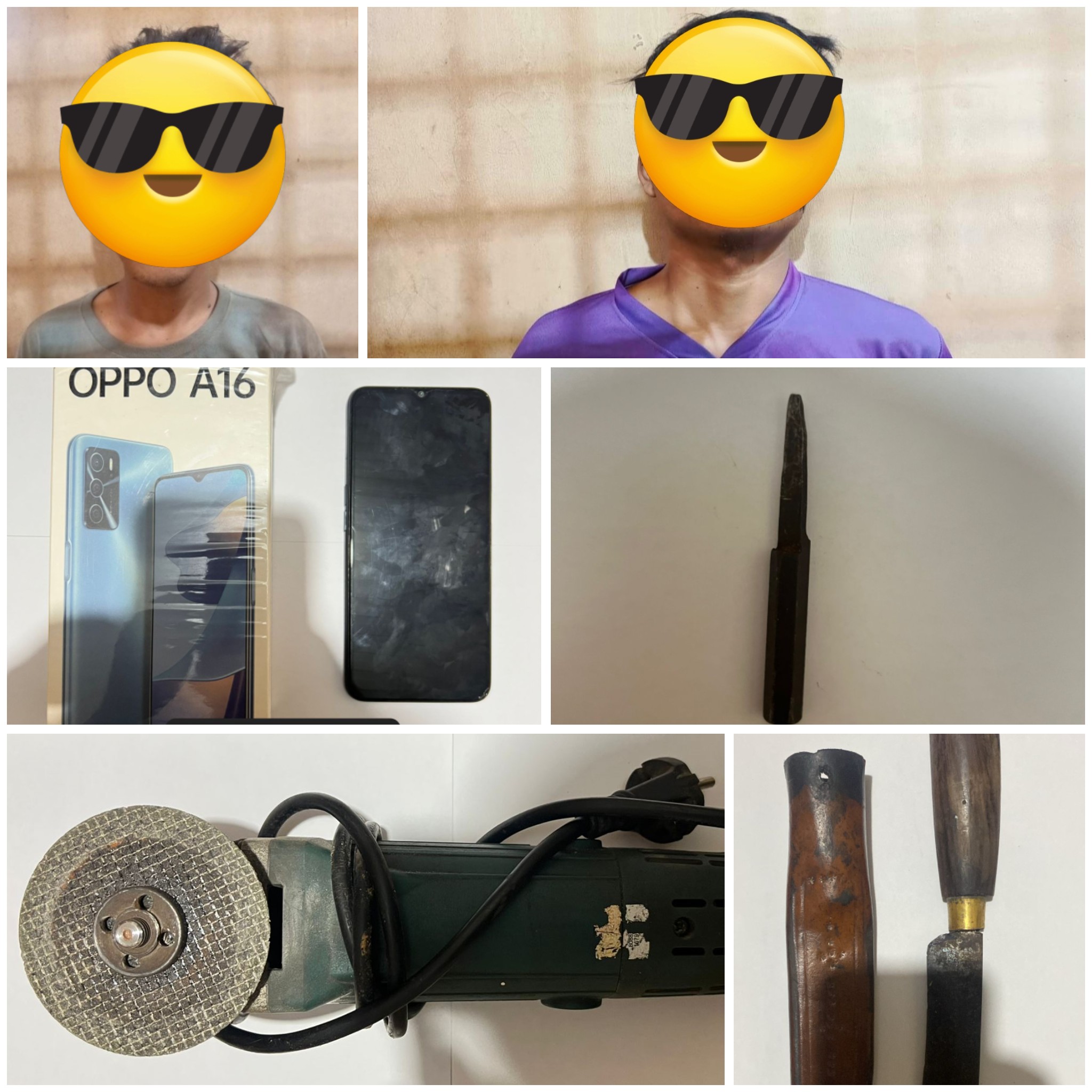 Selanjutnya tersangka bersama barang bukti 1 buah kotak Handphone Merk OPPO A16 (milik korban), 1 unit Handphone Merk OPPO A16 (milik korban), 1 buah kunci leter T dengan panjang sekira 5 cm (milik pelaku), Sebilah senjata tajam jenis pisau (milik pelaku) dan 1 unit alat pemotong jenis gerinda (milik pelaku) di bawa ke Mapolsek Simpang Pematang guna pemeriksaan lebih lanjut. Terang Kapolsek